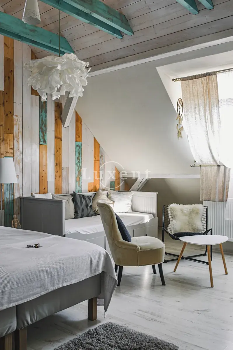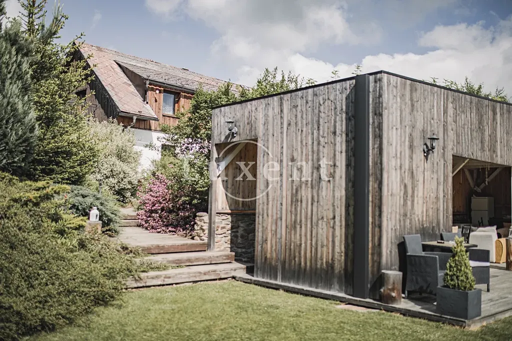 Nabízíme k prodeji stylový designový penzion se zahradou bez mála 2000 m² a celkovým pozemkem o rozloze 2.272 m² situovaný v krásné šumavské lokalitě s výhledem do údolí – na konci obce Masákova Lhota, Zdíkov, okres Prachatice. Oblast je součástí CHKO Šumava. Chalupa z poloviny minulého století byla v průběhu posledních let novými majiteli s uměleckým citem rekonstruována na rodinný dům s ubytováním a později na pouze penzion se zahradním altánem s barem, restaurací i parkováním.