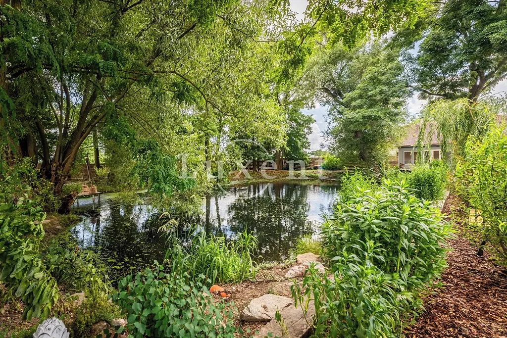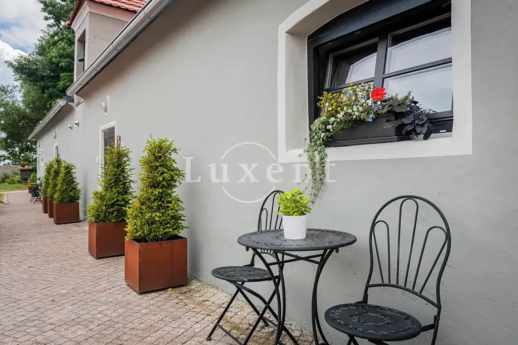 Prodej zahrnuje historickou zámeckou budovu s pěti ložnicemi a stylově zařízenými interiéry, dva butikové apartmány v samostatné budově, venkovní vyhřívaný bazén s protiproudem, soukromý rybník obklopený parkem a vodním domkem ideálním pro letní ubytování. Součástí areálu je také zámecká stodola s kapacitou až 70 míst, která byla precizně přizpůsobena pro pořádání různorodých akcí, jako jsou oslavy, vernisáže, přednášky či koncerty. Dále zde naleznete samostatnou garáž pro čtyři vozy, francouzskou bylinkovou a květinovou zahradu s okrasnými jezírky, romantické pergolové rozárium a nádvoří zdobené ústřední uměleckou plastikou.