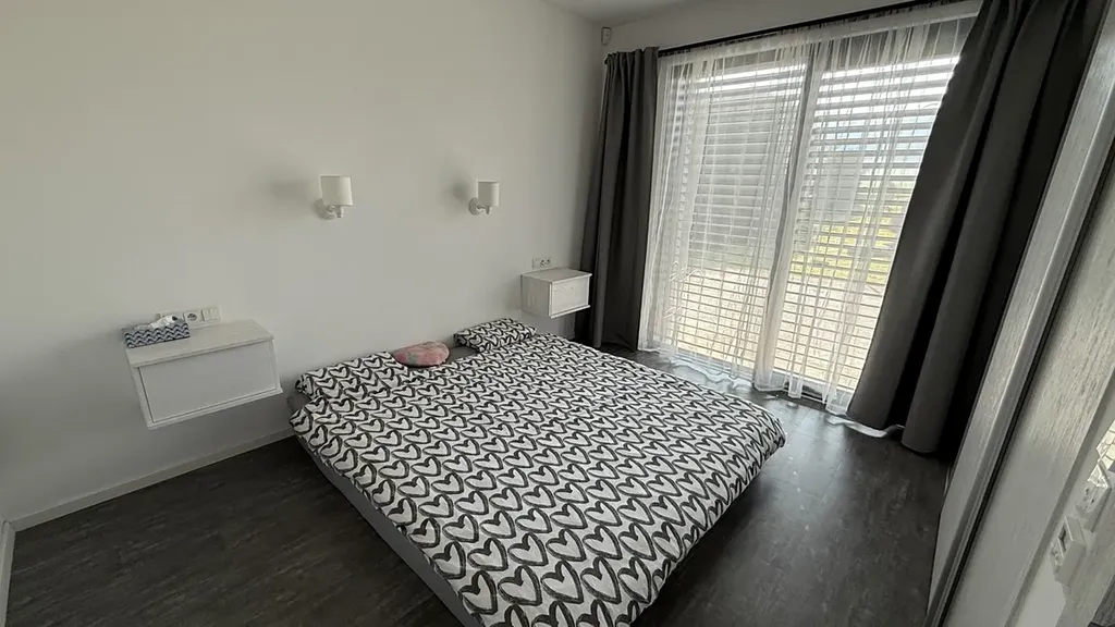 Stavba je zděná se zateplením, má valbovou střechu s betonovou krytinou a plastová okna s trojskly a venkovními roletami. V interiéru se nachází prostorný obývací pokoj s kuchyňským koutem, dvě koupelny (jedna se sprchovým koutem, druhá s vanou, sprchou a infrasaunou) a několik samostatných pokojů. Vytápění je řešeno elektrickým podlahovým topením s regulací v místnostech, doplněné krbovou vložkou. Dům je vybaven rekuperací a kamerovým systémem.