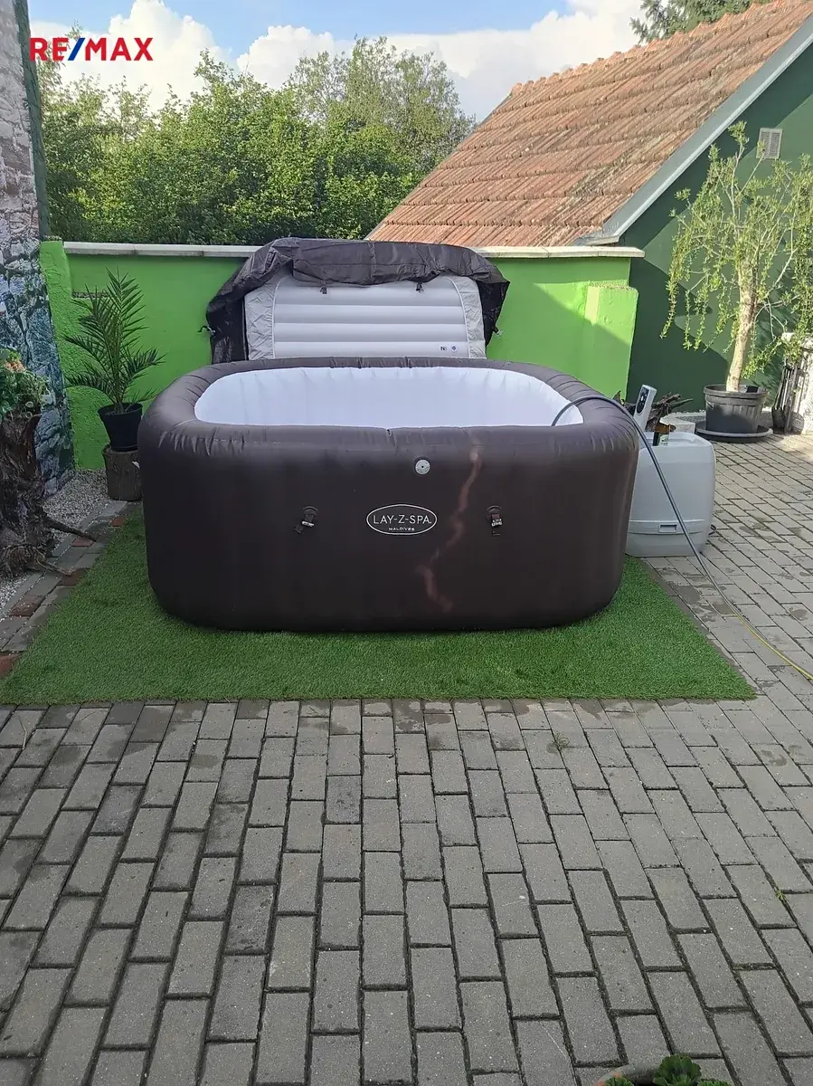 Zahrada je okrasného typu s minimální údržbou, nabízí venkovní vířivku, posezení a prostor pro případnou letní kuchyň. Ideální místo pro relax i rodinné chvíle.