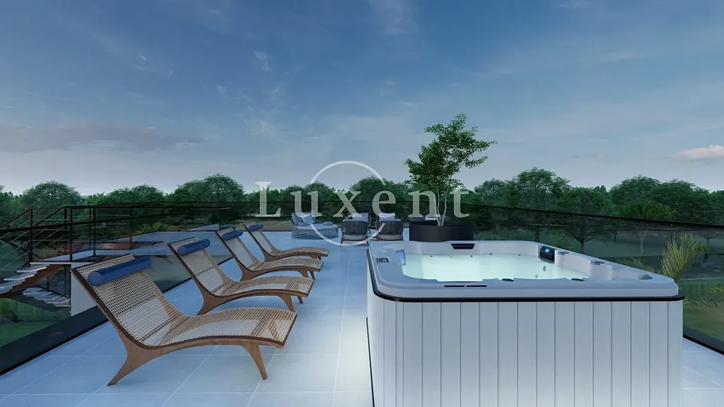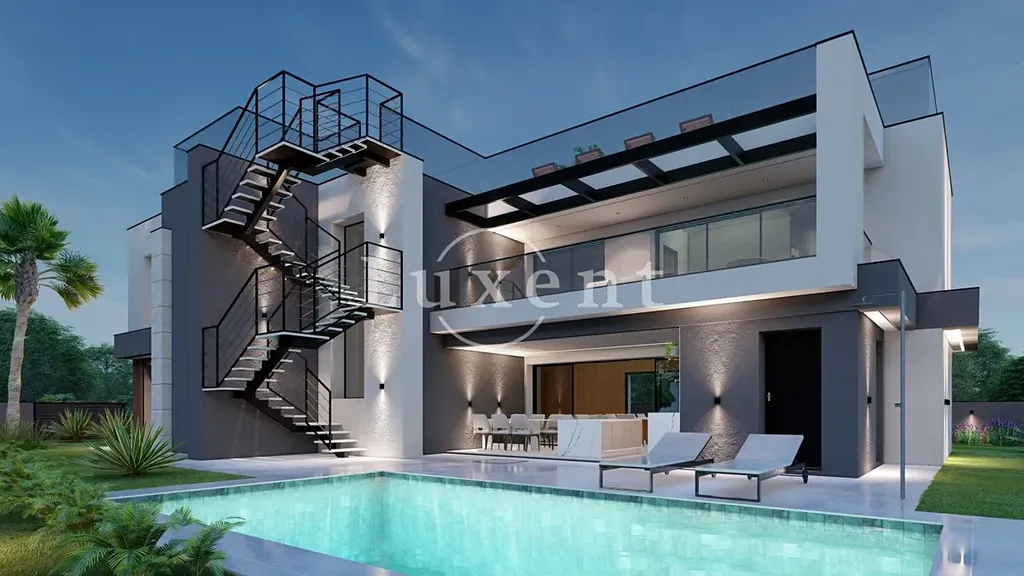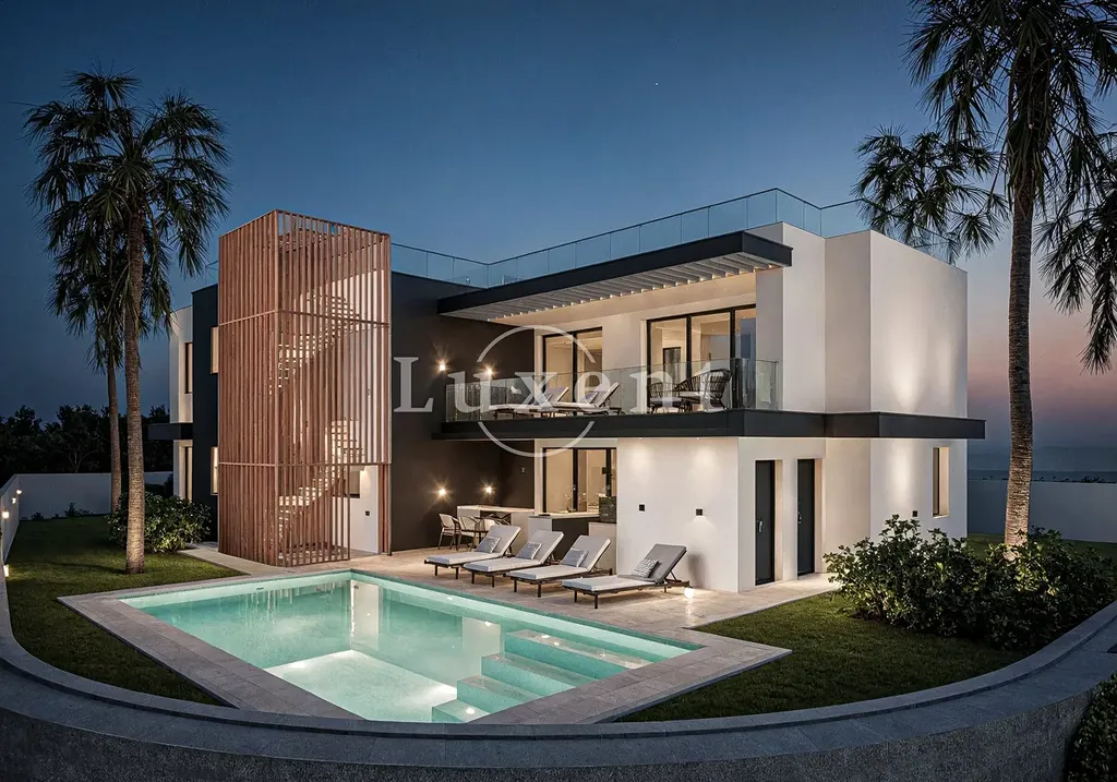 V přízemí vily se nachází velká ložnice s vlastní koupelnou, obývací pokoj propojený s jídelnou a kuchyní a vstup na venkovní terasu. Dále je zde technická místnost a další úložné prostory. V prvním patře jsou tři ložnice, z nichž každá disponuje vlastní koupelnou a vstupem na terasu s výhledem na moře. Kouzelná střešní terasa nabízí prostor k relaxování a trávení času s přáteli a rodinou, s překrásnými výhledy na celé pobřeží a možností umístění zde vířivky. Na zahradě je k dispozici vyhřívaný bazén.