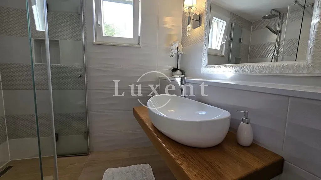 Dům je rozdělen do dvou podlaží. Disponuje třemi komfortními ložnicemi a prostorným obývacím pokojem propojeným s plně vybavenou kuchyní a jídelnou. Z obytné části je přímý vstup na krytou terasu, která plynule navazuje na venkovní část s bazénem, vířivkou, letní kuchyní a grilem – vše dokonale sladěno pro odpočinek a zábavu pod širým nebem.