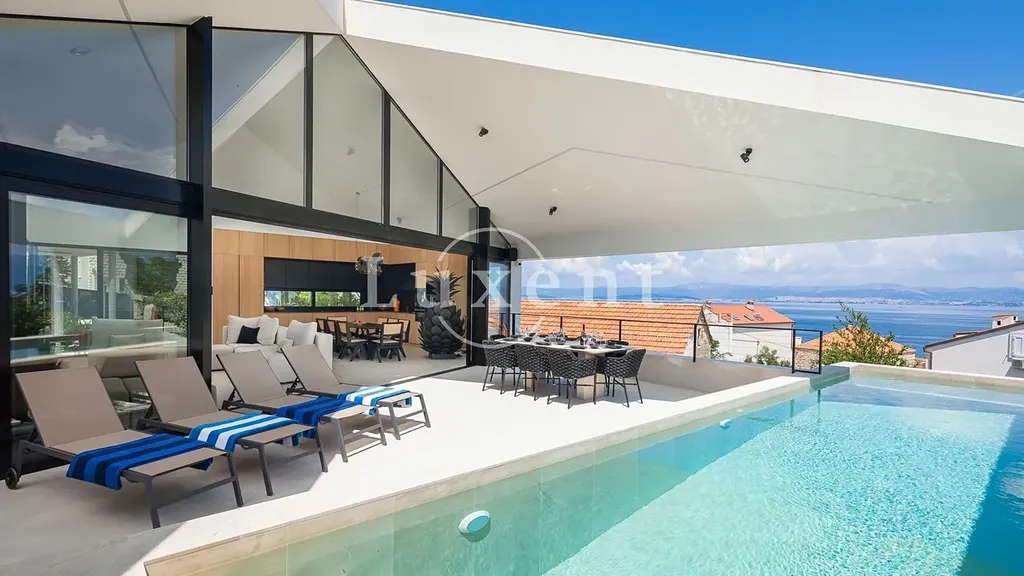Na prodej je výjimečná luxusní vila situovaná na dominantním místě s dechberoucím panoramatickým výhledem na moře. Nachází se v klidné části ostrova Brač, jen pár minut od malebných pláží a centra s veškerou občanskou vybaveností.