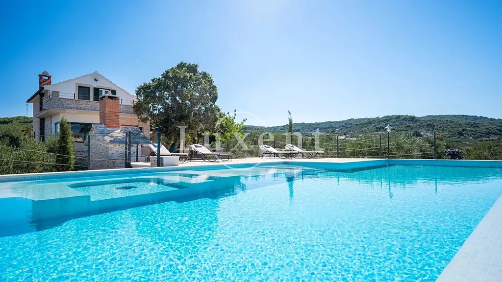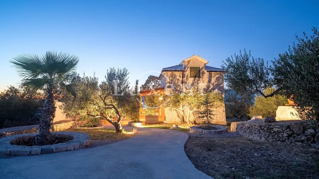 Nabízíme k prodeji exkluzivní dům s bazénem a nádherným výhledem na moře, který se nachází na odlehlém pozemku o rozloze 4722 m2, obklopený nedotčenou přírodou. Celková plocha nemovitosti činí přibližně 83 m2, což nabízí dokonalý prostor pro ty, kteří hledají klid a soukromí. Dům spojuje rustikální dalmatský šarm s moderním designem a je obklopen starými olivovníky, fíkovníky a cypřiši, což podtrhuje atmosféru soukromí a klidu.