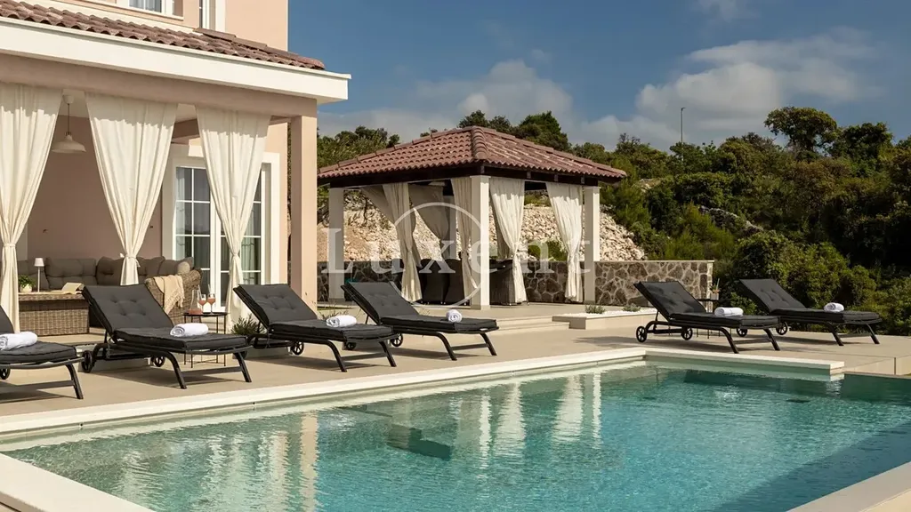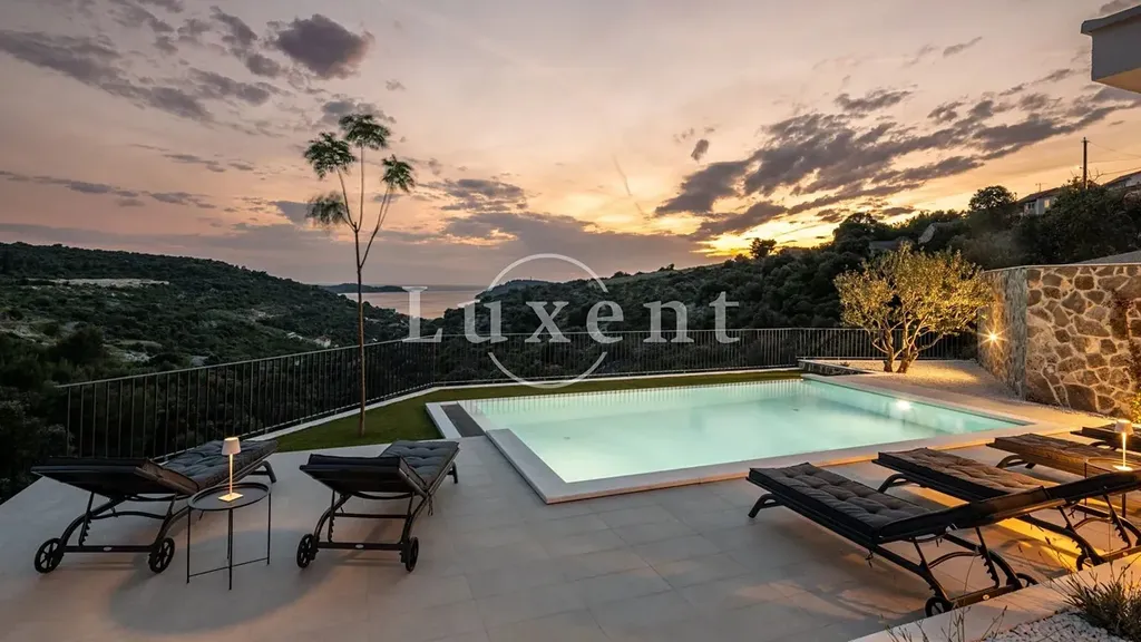 Nabízíme k prodeji luxusní vilu s bazénem a nádherným otevřeným výhledem na šibenické souostroví. Tato nově postavená nemovitost se nachází na výjimečném a klidném místě, ideálním pro ty, kteří hledají soukromí a okouzlující výhledy na západy slunce. Vila je umístěna v naprosté izolaci, s jedinou nemovitostí v okolí, což zaručuje maximální soukromí a klid.