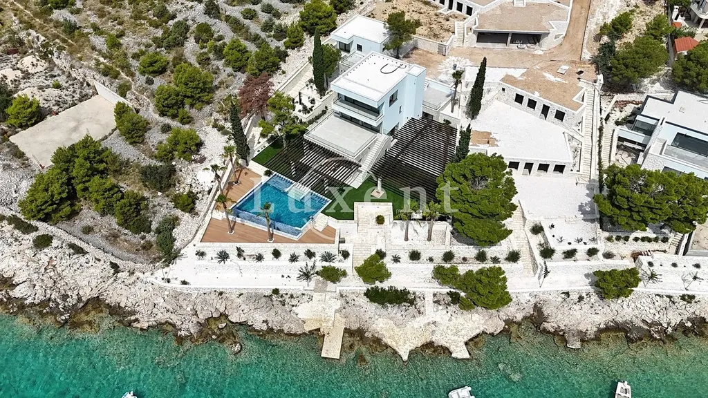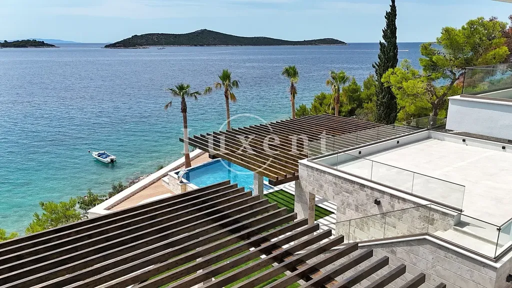 Nabízíme k prodeji nově postavenou luxusní vilu která se nachází přímo v první řadě u moře a nabízí výjimečnou kombinaci středomořského klidu a špičkového komfortu. Situovaná na prostorném pozemku o velikosti 1 483 m2, je obklopena panenskou přírodou a otevřeným výhledem na moře, který umocňuje exkluzivitu celé nemovitosti.