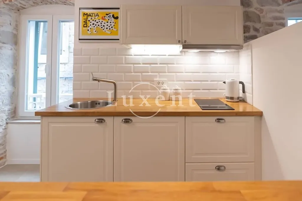 Nabízíme k prodeji kompletně zrekonstruované a stylově zařízené apartmány ve výjimečné lokalitě v centru města Split, jen pár kroků od slavného Diokleciánova paláce a nábřeží. Nemovitost se nachází v prvním patře obytné budovy a disponuje celkovou obytnou plochou 77 m2.
