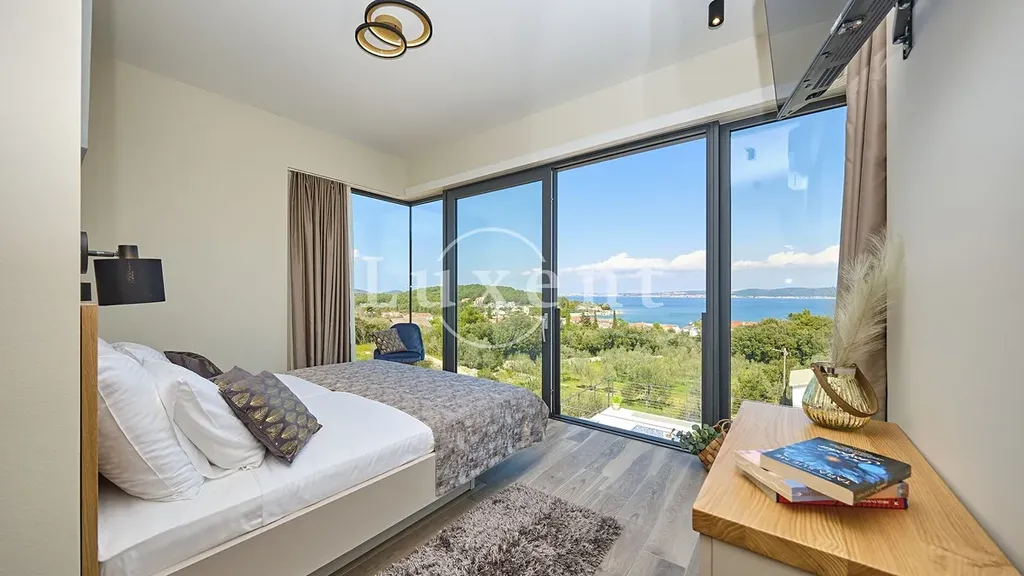 Nabízíme k prodeji nádhernou moderní vilu 400 m2, která se nachází v tichém prostředí s nerušeným výhledem na moře. Tato jedinečná rezidence, postavená na pozemku o rozloze 773 m2, se rozkládá na třech komfortních podlažích a nabízí elegantní kombinaci nadčasového designu, vysoce kvalitního vybavení a absolutního soukromí.