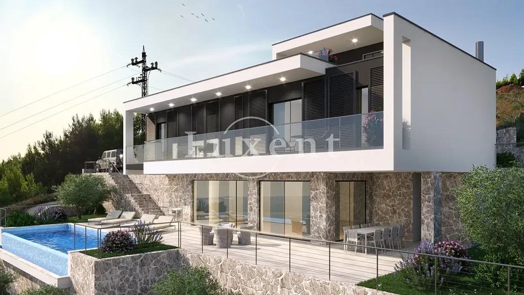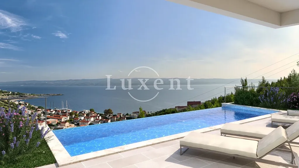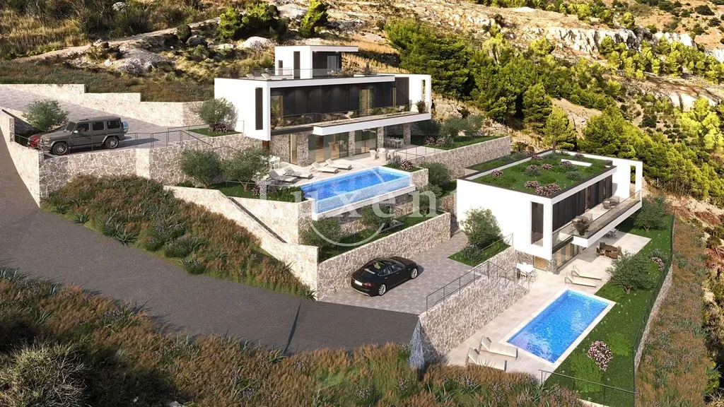 Nabízíme k prodeji moderní vilu ve výstavbě s panoramatickým výhledem na moře a ostrov Brač, situované v klidné oblasti nedaleko města Omiš v Splitsko-dalmatské župě v Chorvatsku. Tato designová nemovitost je navržena tak, aby nabídla maximální komfort, soukromí i eleganci – a to na celkové obytné ploše 252,93 m2 s pozemkem o rozloze 656 m2.