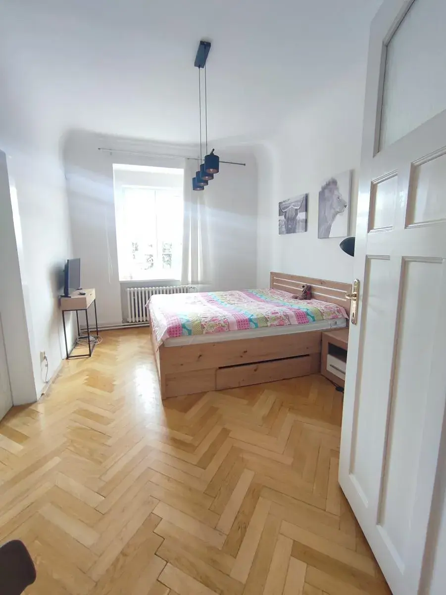 Byt je ve 2. patře krásné vily. Vchod do jednotlivých místností je z prostorné chodby (haly), kde jsou 4 pokoje z toho jednen velký vkodný jako obývací. Součástí bytu je prostorná kuchyň, WC a sprchový kout, vana.Byt je vybaven datovou sítí, podlahy parketové a dlažba, topení a ohřev vody samostatným plynovým kotlem. Parkovací místo ve dvoře. Bydlení v této lokalitě zaručuje klid a soukromí.