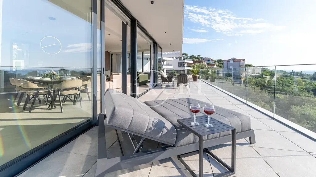 Nabízíme k prodeji novou moderní designovou vilu s dechberoucím výhledem na moře, která je ideální volbou pro všechny, kdo hledají kombinaci luxusu, pohodlí a atraktivní polohy v blízkosti moře i veškeré občanské vybavenosti. Tato výjimečná nemovitost o celkové obytné ploše 250 m2 se rozprostírá na čtyřech podlažích a nachází se na pozemku o rozloze 732 m2. Vila je kompletně zařízená a vybavená a díky velkým proskleným stěnám v každém patře nabízí přirozené denní světlo, vzdušnost a panoramatický výhled na moře i okolní přírodu.