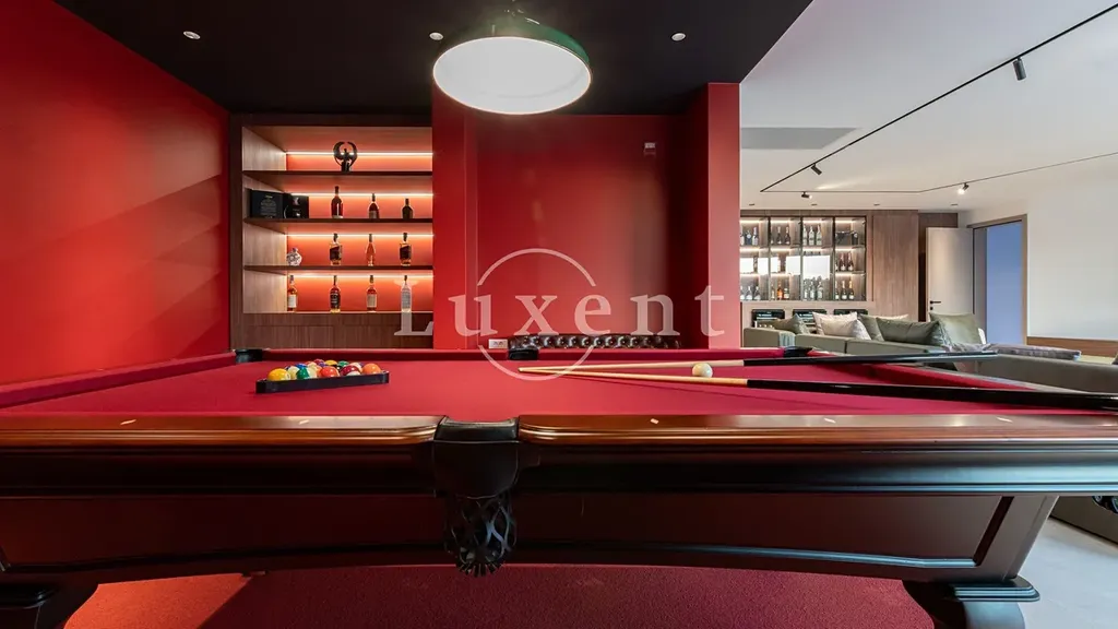 Všechny místnosti ve vile jsou klimatizované a vybavené podlahovým vytápěním, což zajišťuje maximální komfort po celý rok. V suterénu se nachází velkoryse řešený prostor určený pro volný čas a relaxaci – herna s kulečníkem, posilovna a wellness se saunou. Tento prostor je propojen s venkovní terasou pomocí posuvné skleněné stěny, díky čemuž se přirozeně otevírá směrem k bazénu, sluneční terase a venkovní kuchyni s grilem.