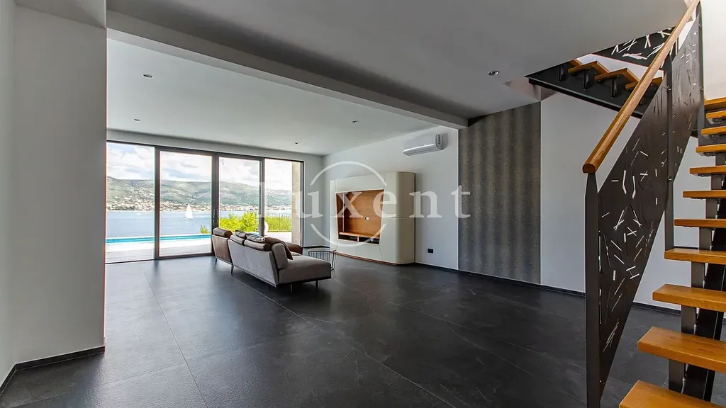 Nabízíme k prodeji nově postavenou moderní vilu v první linii u moře na vyhledávaném ostrově Čiovo, který je spojen mostem s pevninou a jen několik minut jízdy od historického centra Trogiru, zapsaného na seznamu UNESCO. Lokalita je známá svou klidnou atmosférou, krásnými plážemi, azurově čistým mořem a výbornou dostupností díky blízkosti splitského letiště, což z ní činí ideální místo jak pro rekreační bydlení, tak investici.