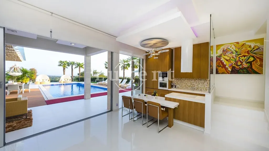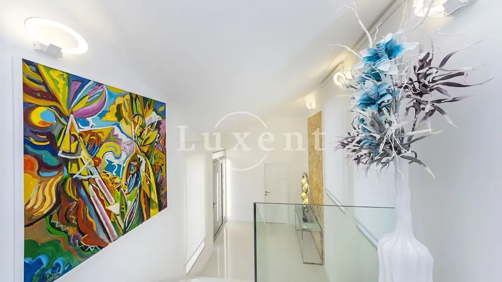 Díky jihozápadní orientaci vila nabízí nádherný výhled na okolní nedotčenou přírodu a moře, přičemž si po celý rok užívá slunečních paprsků. Interiér je stejně působivý – v přízemí se nachází prostorný obývací pokoj s moderním a pohodlným nábytkem, kuchyň, dvě ložnice a koupelna. Panoramatické prosklené dveře propojují obývací pokoj s venkovním prostorem a vytvářejí plynulý přechod mezi interiérem a zahradou. V prvním patře se nacházejí další dvě ložnice s vlastními koupelnami, přičemž každá místnost je navržena s důrazem na styl, funkčnost a pohodlí.
