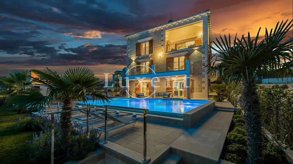 Na prodej je nově postavená kamenná vila s přepadovým bazénem, která se nachází jen 50 metrů od moře v rezidenční části Rogoznice, obklopena luxusními nově postavenými vilami. Celá vnější fasáda vily je vyrobena z 3 druhů ručně tesaného kamene, díla nejlepších kameníků z ostrova Brač, což vile dodává jedinečný a tradiční vzhled.