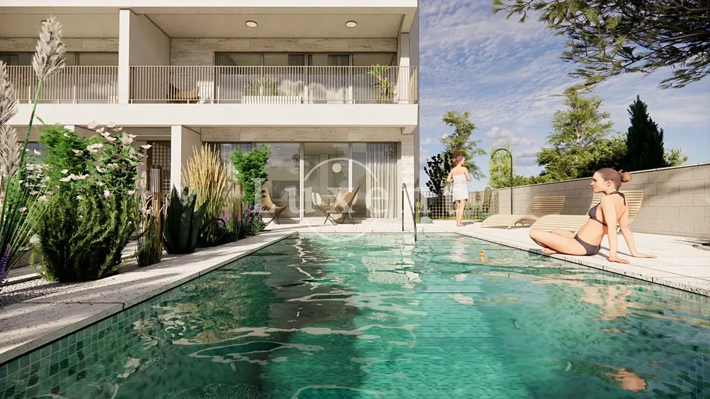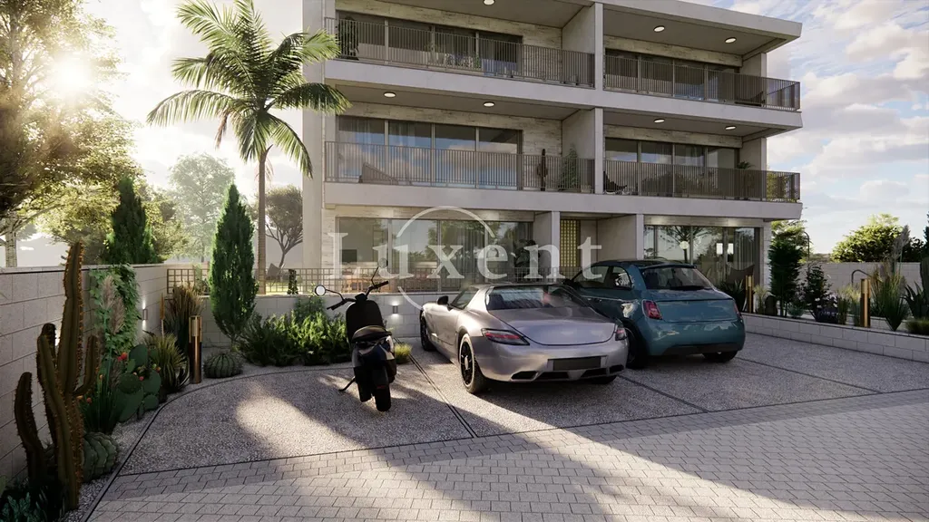 Apartmán o celkové ploše 99,1 m2 se nachází v přízemí a disponuje dvěma ložnicemi, dvěma koupelnami a velkorysým obytným prostorem s kuchyní a jídelnou. Dominantou bytu je terasa o rozloze 24 m2, která vybízí k odpočinku v soukromí a zároveň přirozeně propojuje interiér s exteriérem. Všechny apartmány jsou provedeny ve vysokém standardu s důrazem na design, funkčnost a komfort. Klienti mají možnost individuálně doladit interiér dle svých preferencí, včetně možnosti zařízení „na klíč“. K dispozici bude také společný bazén zasazený v upravené středomořské zahradě. Součástí apartmánu je vyhrazené parkovací stání.