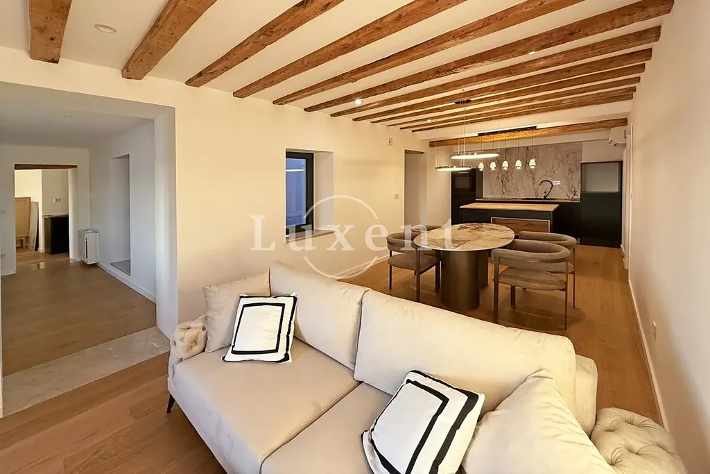 Nabízíme k prodeji luxusní, nově zrekonstruovaný byt, který se nachází v první řadě u moře, v samém srdci Šibeniku. Tento jedinečný byt o velikosti 155 m2 prošel kompletní rekonstrukcí v létě 2022 a vyniká moderním designem, přičemž v interiéru byly použity tradiční materiály, jako dřevo a kámen, které dodávají prostoru nadčasovou eleganci.