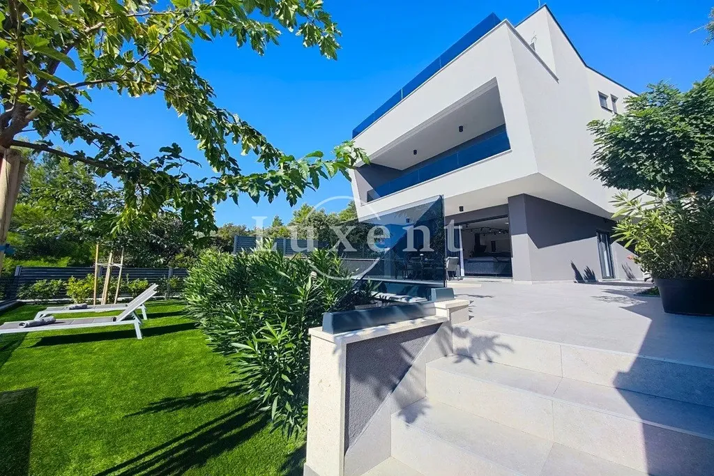 Nabízíme k prodeji výjimečnou moderní vilu situovanou přímo na břehu moře v Zadaru na pobřeží Jaderského moře v Chorvatsku. Tato jedinečná nemovitost představuje dokonalou kombinaci luxusu, pohodlí a soukromí – s přímým přístupem na pláž a každodenním zvukem mořských vln v pozadí. Okolí dotváří středomořské rostliny, oleandry a okrasné stromy, které vytvářejí aromatickou i vizuálně působivou oázu klidu. Součástí pozemku je soukromé parkování pro několik vozů, venkovní bazén o rozměrech 6×4 metry, prostorné místo na opalování, relaxační lounge zóna a travnatá terasa s panoramatickým výhledem na moře.