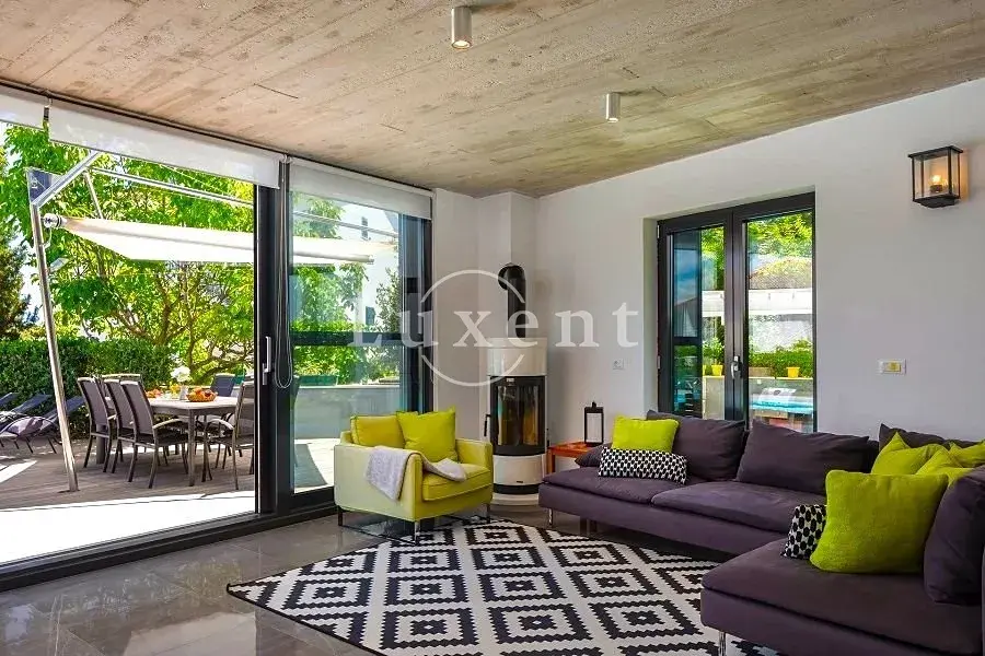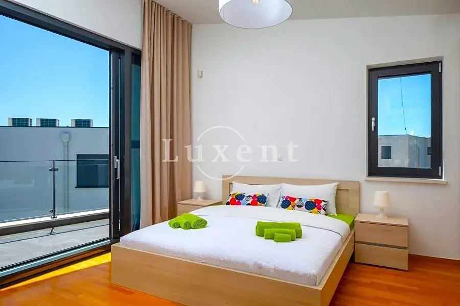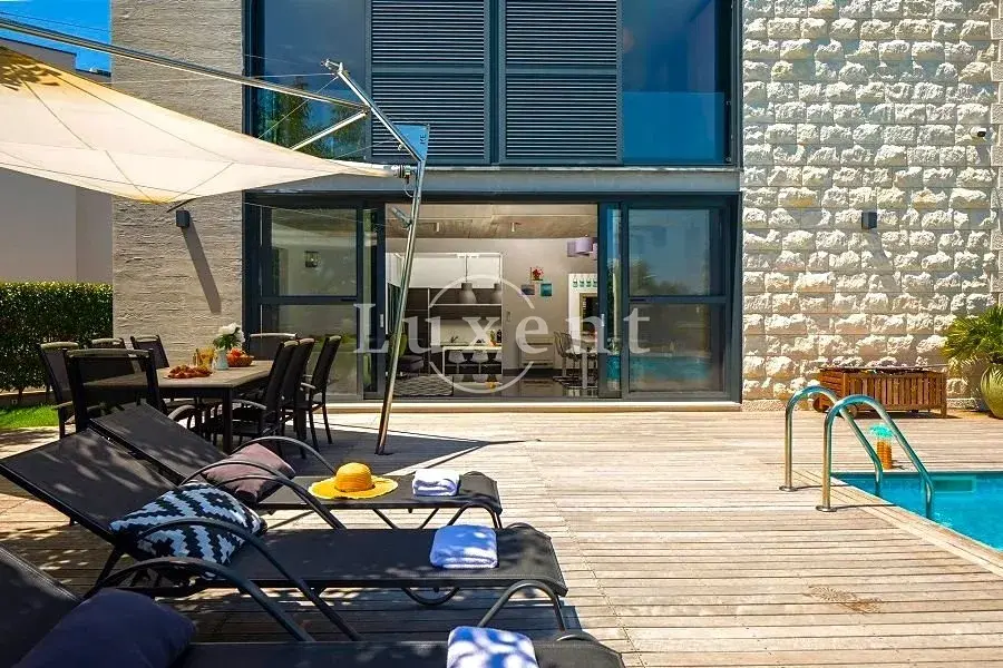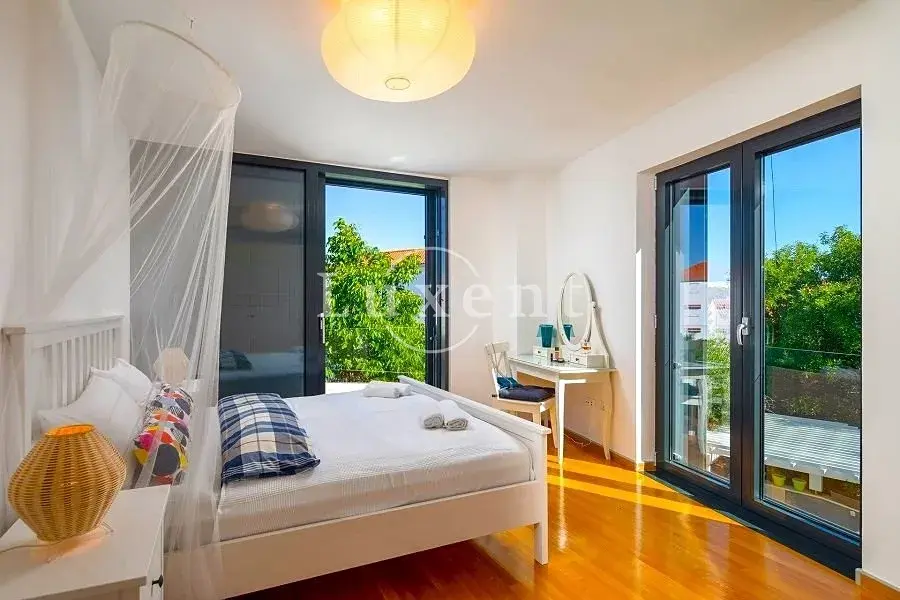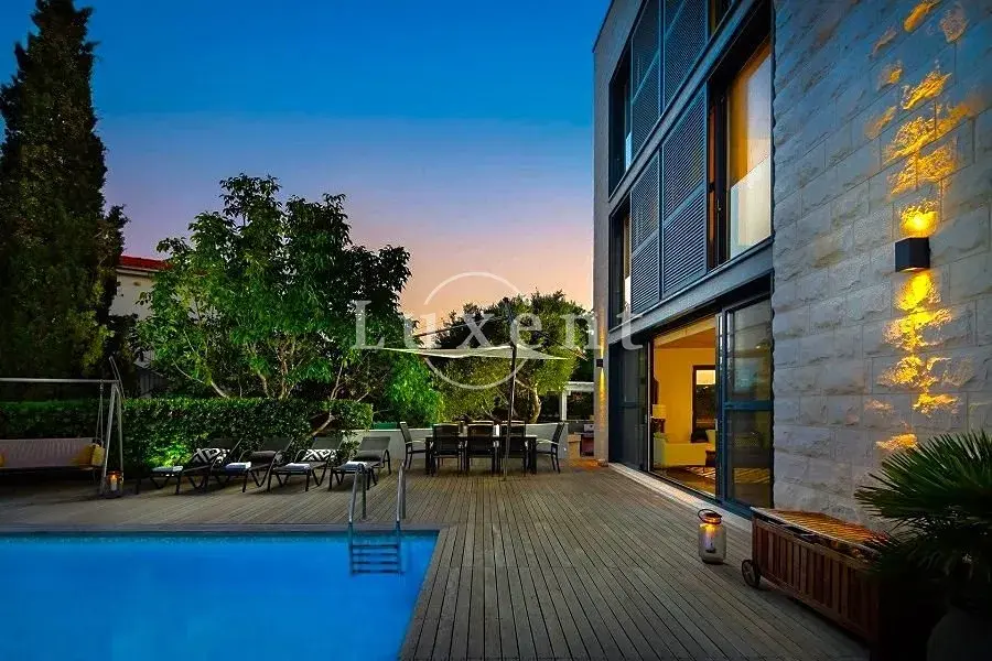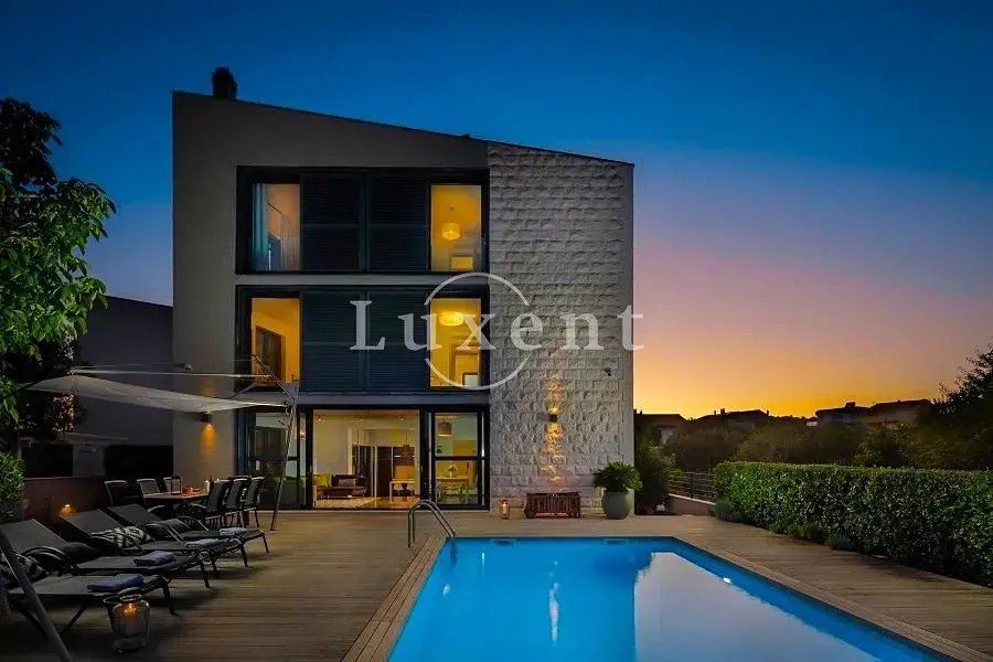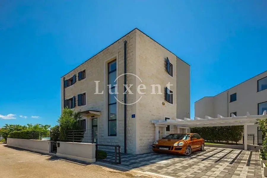 Nabízíme k prodeji moderní vilu s bazénem v prestižní lokalitě Rogoznice, jen 70 metrů od moře. Tato výjimečná moderní vila se nachází na pečlivě upraveném pozemku o rozloze 472 m² a nabízí celkovou obytnou plochu rozloženou do čtyř podlaží, čímž poskytuje komfortní prostor pro rodinné bydlení i rekreační pobyty.