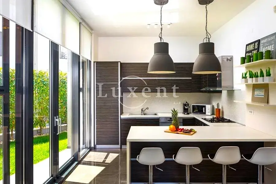 V suterénu domu najdete koupelnu a dvě univerzální místnosti, vhodné například jako domácí kancelář, hernu či fitness prostor. Přízemí tvoří otevřený koncept propojený s prostorným obývacím pokojem, kuchyní, jídelnou a ložnicí, doplněný koupelnou a spíží. Z tohoto podlaží je přímý přístup na vyhřívaný bazén a velkou sluneční terasu, která spolu s pečlivě upravenou zahradou poskytuje ideální prostor pro relaxaci, odpočinek i společenské aktivity.