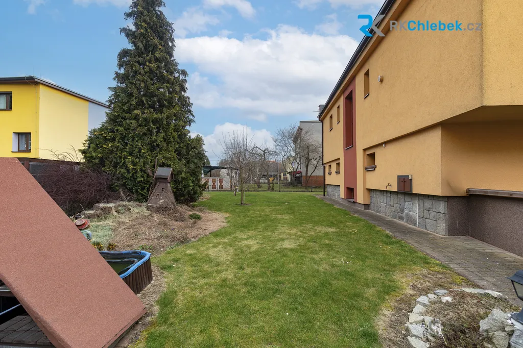 Dům se nachází na rovinatém pozemku s udržovanou zahradou, která nabízí dostatek prostoru pro odpočinek i rodinné aktivity. Součástí domu je garáž pro jedno auto a před garáží je možné pohodlně zaparkovat další auto.