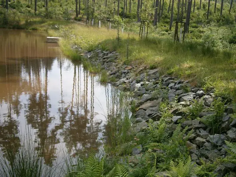 Pacht VN Slamák, která se nachází na pozemcích parc. č. st. 202, součástí je stavba vodního díla, hráze přehrazující vodní tok nebo údolí, a parc. č. 1060/6, v k. ú. Sklené nad Oslavou. Jedná se průtočnou, nově zbudovanou - v roce 2015, retenční nádrž. Vypouštění je zajištěno pomocí spodní výpusti typu otevřený požerák. Odpadní potrubí je z PP DN 400 mm a ústí v betonovém bloku výusti pod hráz do otevřeného koryta Tiského potoku. Nádrž je průtočná Tiským potokem a je jím tedy i napájena. Kromě něj zajišťuje přítok do nádrže ještě jeden bezejmenný potok, zejména v období vydatných dešťů, nebo tání sněhu na jaře. Převedení velkých vod je řešeno korunovým bezpečnostním přelivem, který má dostatečnou kapacitu pro převedení navrhovaného průtoku Q100=1,5m3/s. Přeliv je čelní se širokou korunou tvaru lichoběžníku, opevněnou kamennou dlažbou do podkladního betonu.