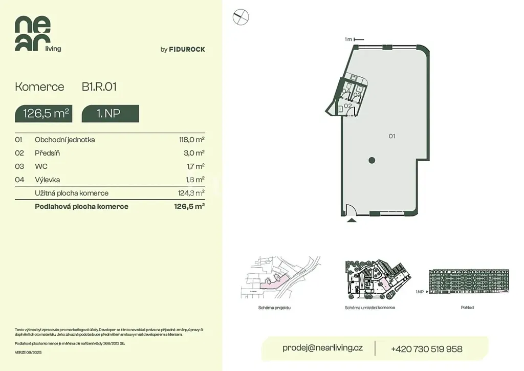 Nabízíme k prodeji komerční jednotku o výměře 126,5 m2 v novostavbě projektu NEAR living na pražské Palmovce. Nebytový prostor je situován v 1. NP novostavby s přímým vstupem z ulice a prodává se ve stavu Shell & Core, což umožní dokončit a kolaudovat prostory zcela podle vlastních požadavků.