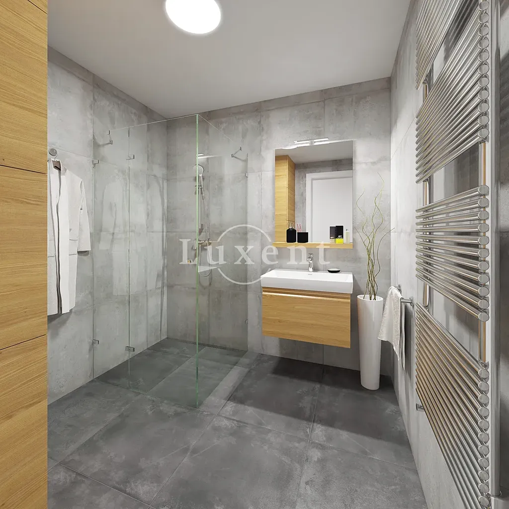 Vybavení apartmánů splňuje ty nejvyšší normy. Dřevěná okna a terasové dveře s izolačním trojsklem v barvě antracitu a tepelně izolovaná dřevěná střešní okna s dvojitým zasklením. V obytných místnostech je dřevěná vícevrstvá lepená podlaha kombinovaná s elegantní dlažbou 60x60 ve dvou standardech (Villeroy & Boch šedá, Abitare antracit imitace betonu). Keramické obklady stěn v koupelnách také ve dvou standardech (30x60 Villeroy & Boch bílá barva, 60x60 Abitare šedá barva imitující přírodní beton).