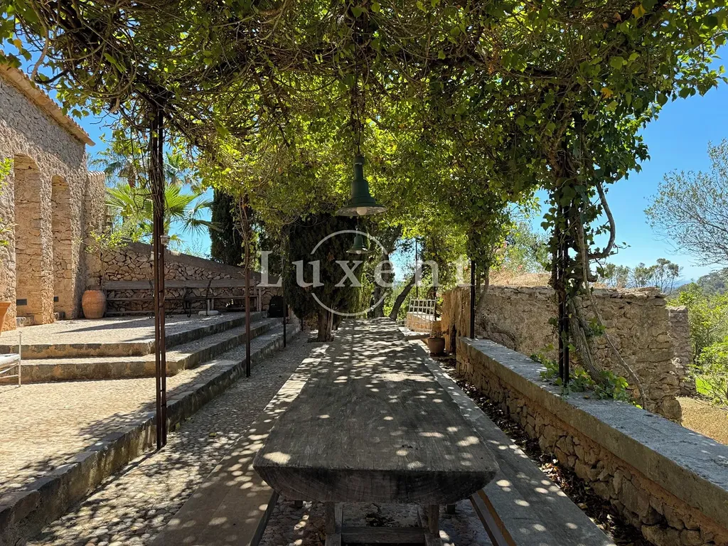 Nabízíme k prodeji jedinečnou historickou fincu z 18. století, nacházející se na malebném svahu poblíž vesniček S'Horta a Calonge na jihovýchodním pobřeží Mallorky. Tato nádherná nemovitost o rozloze 680 m2, zasazená na pozemku o velikosti 13 500 m2, spojuje kouzlo tradičního mallorského stylu s moderním komfortem. Navržena renomovaným architektem Thomasem Wegnerem, finca harmonicky splývá s okolní přírodou, čímž vytváří prostor, který je v dokonalé symbióze s krajinou.