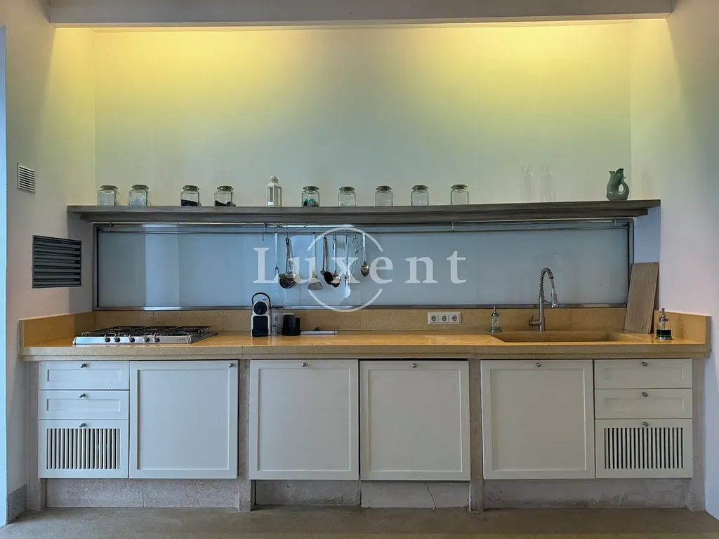 Nemovitost je navržena s ohledem na maximální pohodlí – silné kamenné zdi udržují v interiéru příjemnou teplotu i během horkých letních dnů, a po celé zahradě najdete útulné koutky k relaxaci. O pár kroků dál vás čeká 26 metrů dlouhý bazén s panoramatickým výhledem na okolní krajinu. Pro milovníky moře je k dispozici i střešní terasa s úchvatným výhledem na moře, který dokresluje jedinečný zážitek z této nemovitosti.
