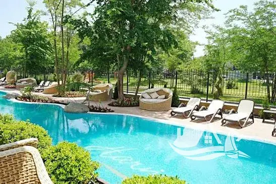 vybavení areálu: bazén, dětský bazén, vířivka, wellness, zahrady, recepce, ostraha