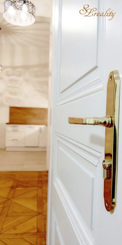 The living room got a new kitchen with modern appliances. Bedrooms have an original authentic parquet. Ceilings are 4m high.