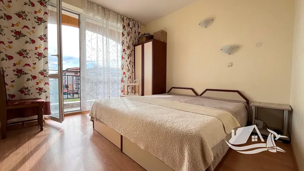 Tento světlý apartmán v komplexu Chateau Aheloy 1 působí od první chvíle otevřeně a příjemně. Nachází se ve druhém podlaží a jeho dispozice dává smysl nejen na papíře, ale hlavně v každodenním životě. Obývací pokoj s kuchyňským koutem je místem, kde se potkává den – ranní káva, společné večeře i odpočinek po návratu z pláže. Dvě samostatné ložnice pak nabízejí dostatek prostoru pro rodinu i hosty.