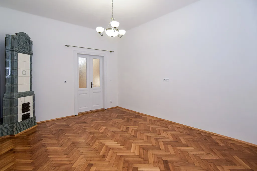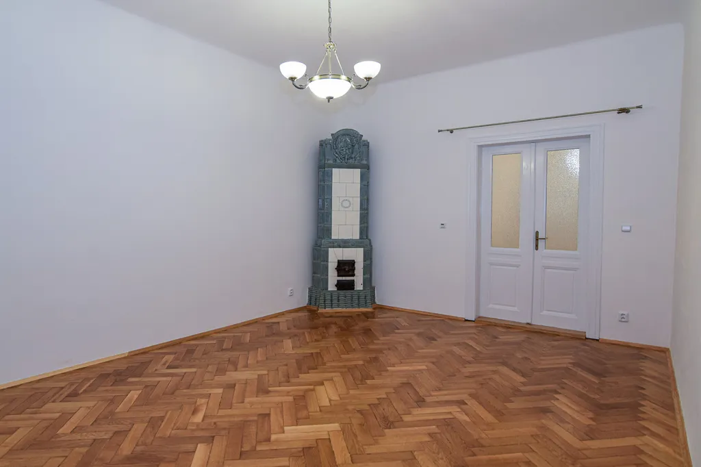 V obývacím pokoji byla zachována původní kachlová kamna, která celému prostoru dodávají neobyčejnou atmosféru. Kamna jsou pouze dekorativní, neslouží k topení. Místnost má výměru 22 m² a je zde prostor i na jídelní stůl.