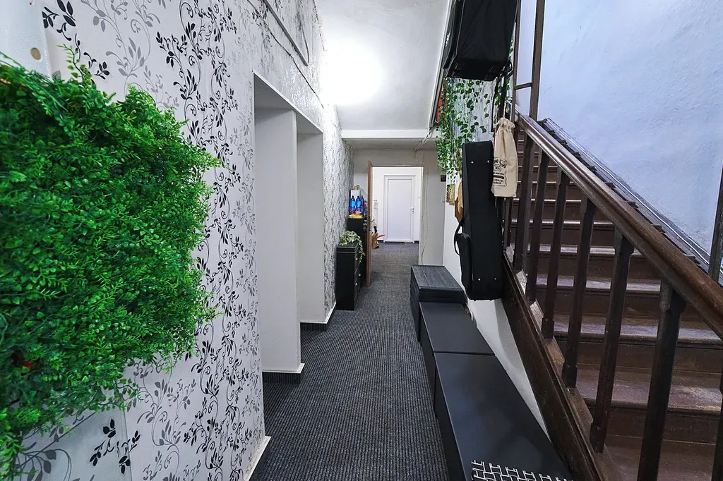 • Druhé podlaží (1. patro): kanceláře, dva osobní byty, dále půdní prostory – celková plocha 316 m²