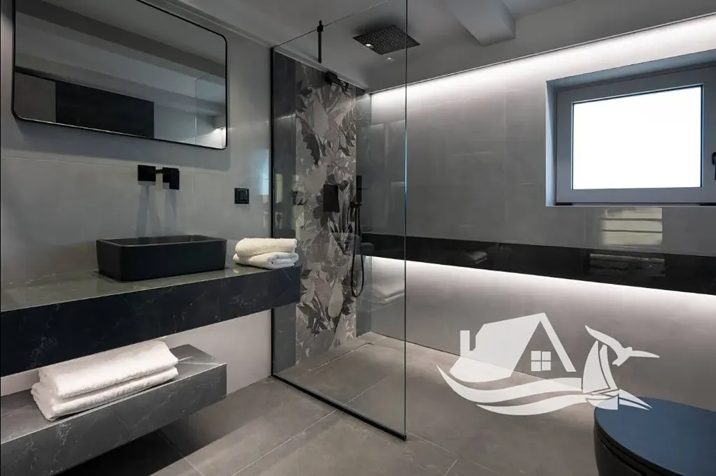 Pozemek je kompletně oplocen tradičními kamennými zdmi, vstup je zajištěn elektrickou branou, což podtrhuje exkluzivitu a bezpečnost nemovitosti. Vila je prodávána plně zařízená a připravená k okamžitému užívání. Moře je vzdáleno přibližně 1 000m, zatímco centrum města Chania je dostupné během krátké jízdy autem – ideální kombinace klidu a komfortu městské dostupnosti.