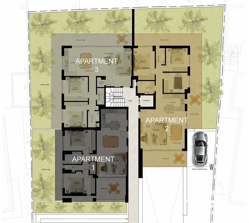 Nabízíme stylový apartmán 3+kk, o celkové ploše 87,03 m², umístěný v přízemí moderního rezidenčního projektu s pouhými 9 apartmány. Projekt se nachází ve vyhledávané lokalitě pouhých 5 minut od centra města Chania a zároveň v rychlé dostupnosti pláží poloostrova Akrotiri.