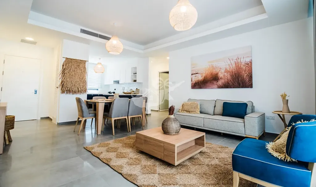 Objevte dokonalé spojení luxusu a pohodlí v tomto elegantním apartmánu se dvěma ložnicemi a zahradou, který je součástí prestižního resortu Sun Valley Seaside.