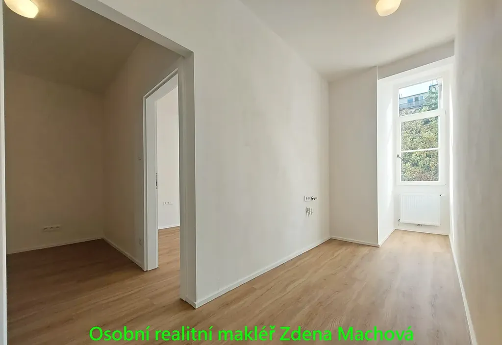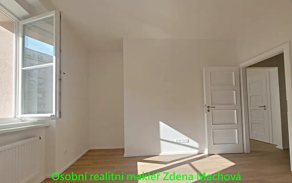 Byt prošel kompletní rekonstrukcí a je orientován na východ i západ, s výhledem do ulice Písecká a do klidného vnitrobloku. Vstupní předsíň působí velmi prostorně díky vysokým stropům a oknu, je zde příprava na pračku a místo vhodné pro vestavěné skříně. Další výklenek v předsíni lze využít jako pracovní kout pro home office. Z předsíně se vstupuje do ložnice (17,40m2) s výhledem do zeleného vnitrobloku, kde je rovněž prostor pro vestavěnou skříň.
