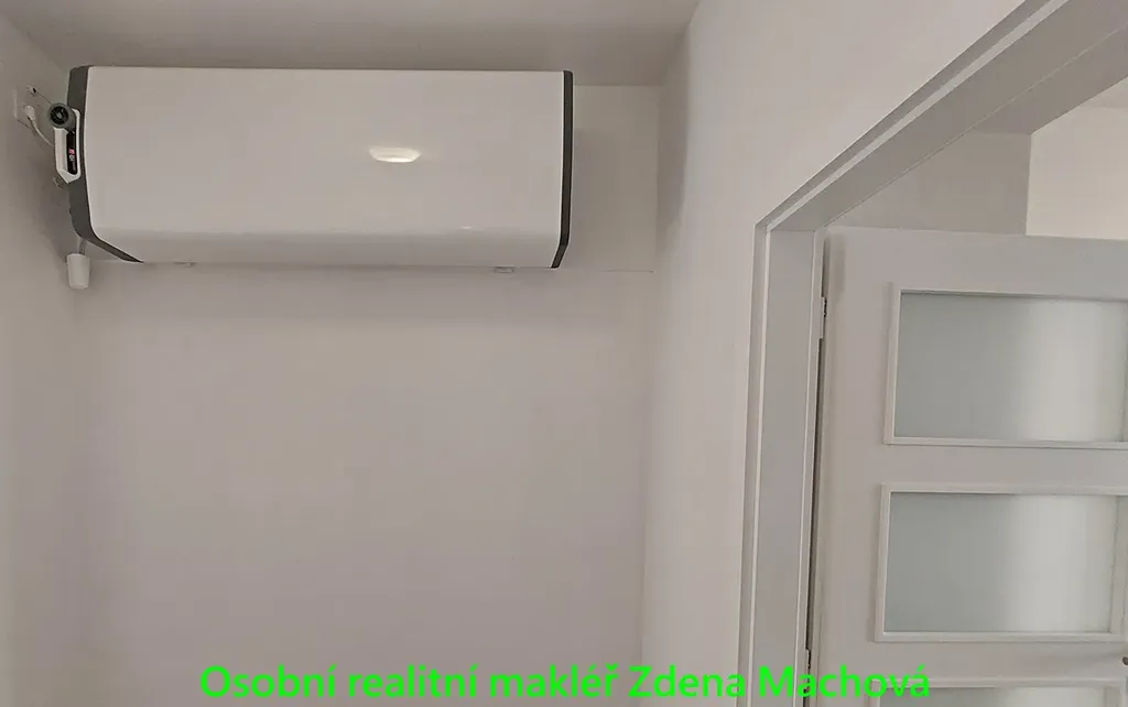 Samostatné WC (1,30m2) je vybaveno malým umyvadlem a elektrickým kotlem na vytápění. Koupelna (3,30m2) nabízí nový velký sprchový kout a umyvadlo. Před vstupem do kuchyně a obývací části (19,30m2) se nachází elektrický bojler na ohřev vody. Nová kuchyňská linka je vybavena varnou deskou zn.Elektrolux, troubou a mikrovlnnou troubou zn.Bosch, myčkou a velkou kombinovanou lednicí s mrazákem. Kuchyň poskytuje dostatek úložného prostoru.