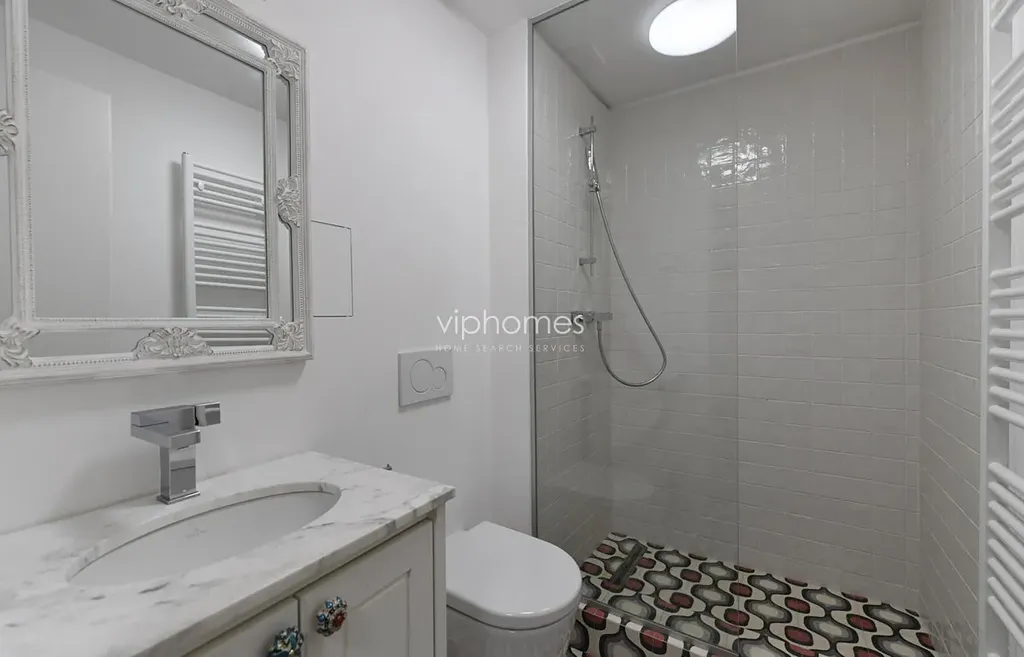 Ve spodním patře byt nabízí vstupní chodbu, obývací pokoj s kuchyňským koutem, ložnici, koupelnu, samostatnou toaletu a šatnu. V horním patře se nachází 2 ložnice a koupelna s vanou a toaletou. Z bytu je příjemný výhled do klidného vnitrobloku. Kuchyňský kout je vybaven sklokeramickou varnou deskou, el. troubou, lednicí s mrazákem, mikrovlnnou troubou a myčkou nádobí. Koupelna ve spodním patře disponuje vanou a toaletou, v horním patře sprchou a toaletou. Ložnice jsou vybaveny vestavěnými skříněmi. Celý byt i rezidence nabízejí vysoký standard bydlení. V bytě jsou kvalitní dřevěné podlahy a je klimatizován.