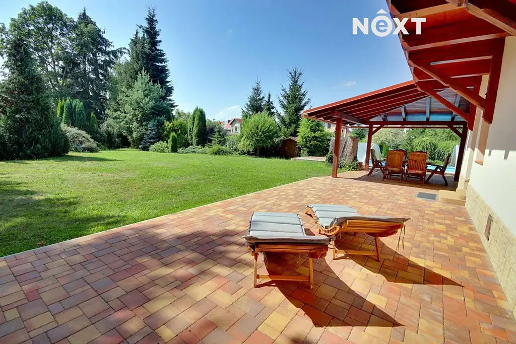 Dům je částečně zařízen, součástí je i venkovní zastřešený zapuštěný bazén, díky jihozápadnímu umístěním je dům i zahrada celý den slunná.