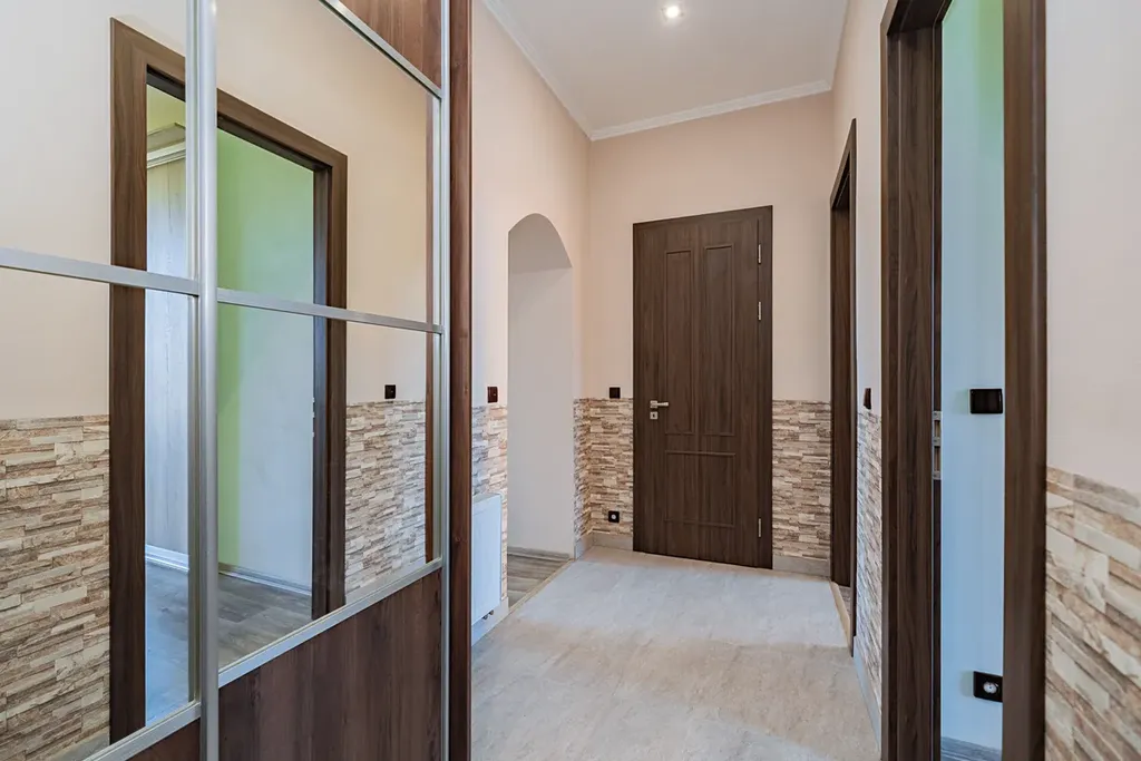 Pocit komfortního bydlení, vzdušnosti a velkorysého prostoru dotváří vysoké stropy se sníženými podhledy s nainstalovaným odhlučněním.