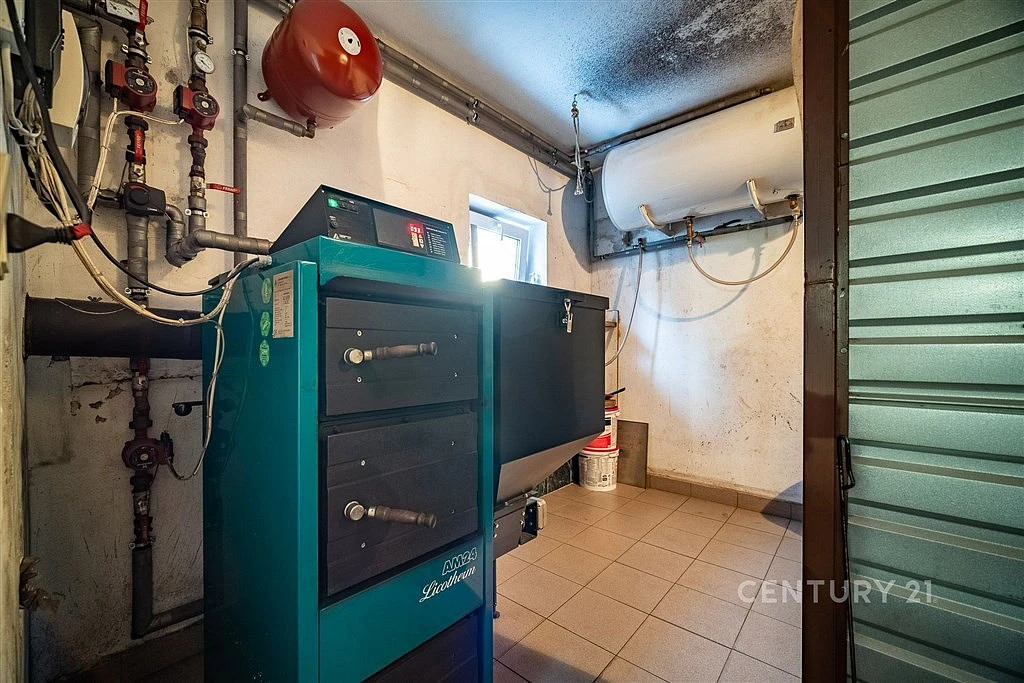 Dům je vytápěn kotlem se zásobníkem na uhlí a ohřev TUV je kombinovaný bojler 200 l se zdrojem kotel / elektřina. Na zahradě je studna, která složí jako zdroj vody pro jezero a celou zahradu.