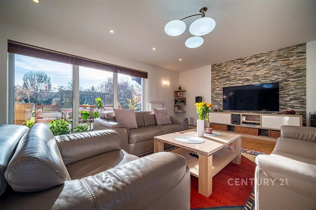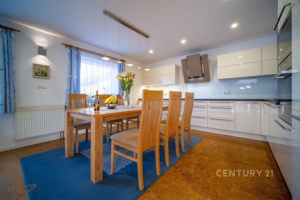 Nabízíme k prodeji rodinný dům s garáží o zastavěné ploše 152 m² a zahradou o celkové výměře 1.198 m². Součástí zahrady je nejen již zmíněné koupací jezero, ale najdete zde i skleník a pergolu.