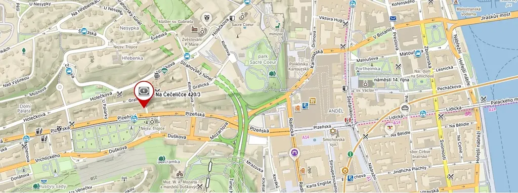 Lokalita je unikátní, kombinuje skvělou dopravní dostupnost (tram zastávka Bertramka 1 min. chůze), blízkost přírody (Petřín, Klamovka, park Sacré Coeur), možnost nákupů (OC Nový Smíchov), sportovní zázemí a společenské vyžití.