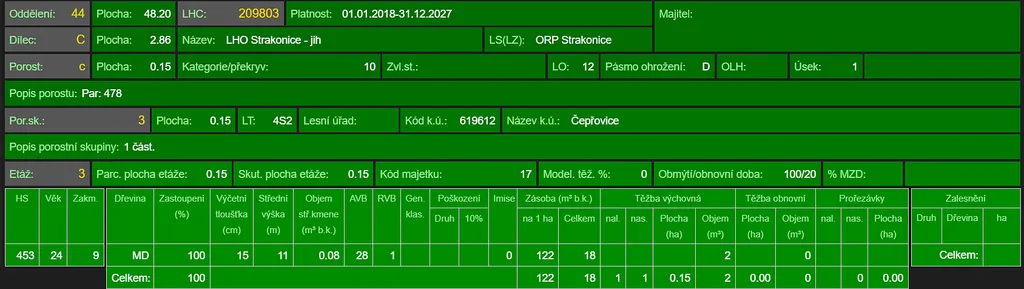 Prodej lesního pozemku v katastrálním území Čepřovice, okr. Strakonice. Jedná se o pozemek p.č. 478 o výměře 1.644 m². Pozemek je situován na rovině až mírně svažitém terénu s přístupem po nedaleké obecní cestě, následně přes sousední louku. Na ploše pozemku se dle platných LHO nachází lesní porost modřínu ve věku 32 let. V malém množství se zde nachází lesní porost borovice a ostatních listnáčů v témže věku. Pozemek sousedí s lesním majetkem LČR. Informace na tel. nebo e-mailu.