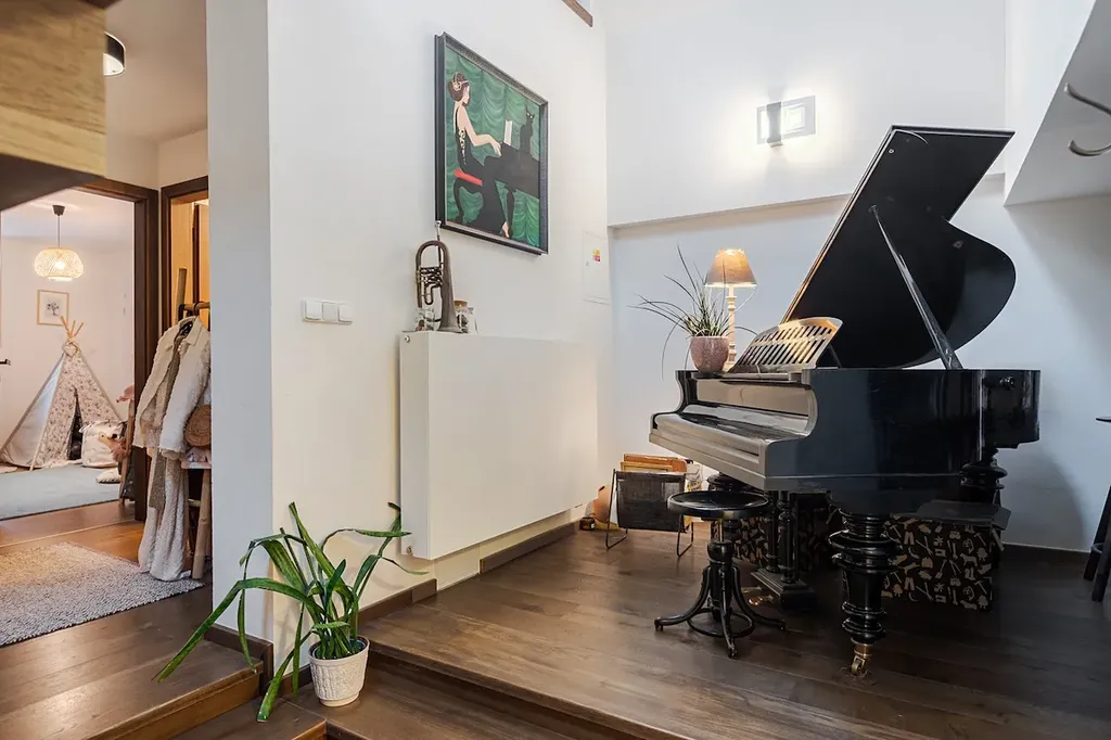 Exkluzivně nabízíme k prodeji výjímečný měšťanský dům na Smetanově náměstí v Litomyšli. Objekt č.p. 62 je tvořen třemi nadzemními podlažími, kompletním podsklepením a rozlehlým podkrovím, které bylo citlivě přestavěno na mezonetový byt. Dům prošel v letech 2008-2012 velmi pečlivou a kompletní rekonstrukcí, během níž byly zachovány původní historické prvky a zároveň doplněny moderní materiály a technologie. Výsledkem je funkční a reprezentativní nemovitost, která nabízí široké možnosti využití – obchodní, rezidenční i investiční. Celková plocha parcely 250 m². Celková vnitřní užitná plocha domu činí přes 459,7m², další desítky metrů tvoří dvorek a další příslušenství k domu. Prodej probíhá formou převodu obchodního podílu společnosti s ručením omezeným, která je výhradním vlastníkem nemovitosti. Přízemí domu bylo původně kolaudováno jako kavárna a tomu odpovídá i jeho dispoziční členění. Dnes zde funguje designový obchod s doplňky Sen dekor, nicméně prostory jsou připraveny i pro návrat ke gastro provozu. Vstupní část se schodištěm navazuje na hlavní místnost s barem, doplněnou o zázemí a sklad. Ze zadní části se vchází do cihlového klenutého sklepa, který byl využíván jako soukromá vinotéka, ideální pro degustace, klubový prostor nebo komorní akce. Ze sklepa je možné vyjít na dvorek s posezením, který může sloužit jako zahrádka pro kavárnu nebo soukromá relaxační zóna. Celková užitná plocha této části je 106,9 m². Ve druhém nadzemním podlaží se nachází prostor původně kolaudovaný ke kavárně, který byl v posledních letech využíván jako ordinace čínské medicíny. Má samostatné sociální zázemí a vstup na jižně orientovanou terasu o velikosti 20,2 m². Tento světlý a tichý prostor o celkové ploše 39,9 m² je vhodný jako ordinace, kancelář, studio nebo lze přestavět na další bytovou jednotku. Ve třetím podlaží najdeme dvě obytné části. První je plnohodnotný byt 1+kk o výměře 55,5 m², orientovaný do náměstí. Dispozici tvoří předsíň, koupelna a prostorná obytná místnost s kuchyňským koutem. Jednotka je samostatně přístupná a nabízí možnost dlouhodobého i krátkodobého pronájmu. Druhou část tohoto podlaží tvoří vstup do mezonetového bytu, který se rozprostírá přes 3. a 4. nadzemní podlaží. Mezonetový byt o dispozici 4+kk a vnitřní užitné ploše 163,3 m² představuje vrchol této nemovitosti – jak rozlohou, tak zpracováním. Při vstupu vás přivítá chodba, kde po pravé straně stojí pianino a navazuje první koupelna . Na patře se nacházejí dvě samostatné ložnice orientované do vnitrobloku, které poskytují naprostý klid. Schodištěm vystoupáte do hlavní obytné části bytu – otevřeného prostoru s výraznou trámovou konstrukcí, odkrytou výškou stropu a precizně řešeným dispozičním členěním. Dominantou tohoto podlaží je kuchyně s velkou pracovní plochou a vitrínami na míru, jídelní kout a obývací část s orientací na jih. Nechybí zde druhá koupelna, samostatná toaleta a další pokoj, který je přístupný přes galerii – ideální jako pracovna, dětský pokoj nebo pokoj pro hosty. Celý prostor působí velmi vzdušně, propojeně, a přitom útulně. Doplněn je lodžií. Tento byt je architektonicky nejhodnotnější částí domu a zcela připravený k užívání bez nutnosti dalších úprav. Dům je napojen na vodovod, kanalizaci, plyn a elektřinu. Vytápění je řešeno samostatně v rámci jednotlivých jednotek. Provozní náklady jsou díky samostatnému měření jednotlivých jednotek dobře přehledné. U nebytových prostor (ordinace čínské medicíny a obchod dohromady) činí orientační měsíční náklady na elektřinu cca 2 300 Kč a na plyn cca 2 700 Kč. Bytová jednotka 1+kk má orientační měsíční náklady na elektřinu přibližně 600 Kč a na plyn cca 1 300 Kč. U mezonetového bytu 4+kk se náklady na elektřinu pohybují kolem 3 250 Kč měsíčně a na plyn cca 3 100 Kč. Náklady na vodu a stočné jsou u všech jednotek účtovány dle skutečné spotřeby a počtu osob. Objekt je vhodný pro vlastní vícegenerační bydlení, kombinaci komerčního a rezidenčního využití nebo jako výnosová investice s možností rozdělení na tři samostatné jednotky. Rekonstrukce domu probíhala s maximálním důrazem na kvalitu a zachování hodnoty stavby, investice do stavebních úprav přesáhly 12 milionů korun. Tato nemovitost představuje výjimečnou příležitost v historickém centru Litomyšle, která bude dále růst na hodnotě.