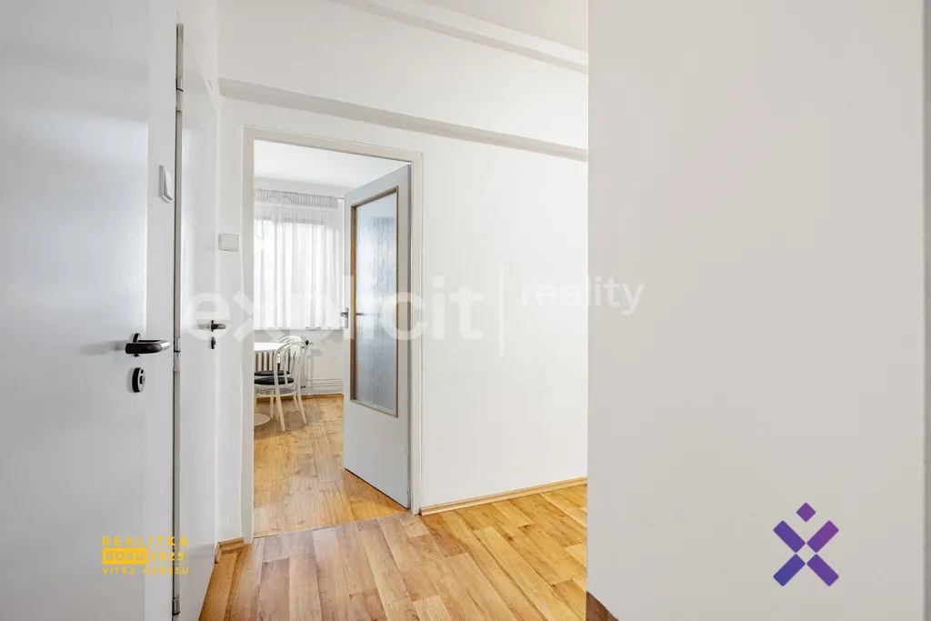 Komfort bydlení zajišťuje oddělená koupelna s vanou a samostatná toaleta. Prostorná chodba nabízí dostatek místa pro skříně, botník i další úložná řešení. Součástí bytu je také balkon a sklepní kóje o velikosti cca 2 m², ideální na sezónní věci či sportovní vybavení.