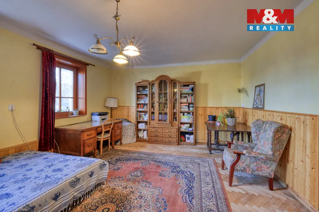 Prodej samostatného rodinného domu v klidné části obce Čejkovy. Smíšená konstrukce, 2 nadzemní podlaží, 4 pokoje, užitná plocha 108 m². Dům je před rekonstrukcí — ideální pro investici nebo proměnu na rodinné bydlení podle vlastních představ. Pozemek 2 162 m² (zahrada 989 m², zastavěná plocha a nádvoří 1 173 m²). Na pozemku prostorná stodola a budova bývalých stájí a chlévů. Vytápění kotlem na tuhá paliva, ohřev vody bojlerem. V obci naleznete obchod s potravinami a ostatní občanské vybavenost je v přilehlém Hrádku. V případě zájmu se neváhejte ozvat. S financováním Vám rádi pomůžeme.